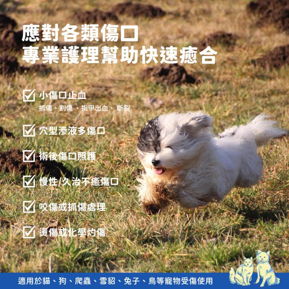🩸任何寵物的⼩傷⼝、輕微出⾎,還是有組織滲液的各種傷⼝。