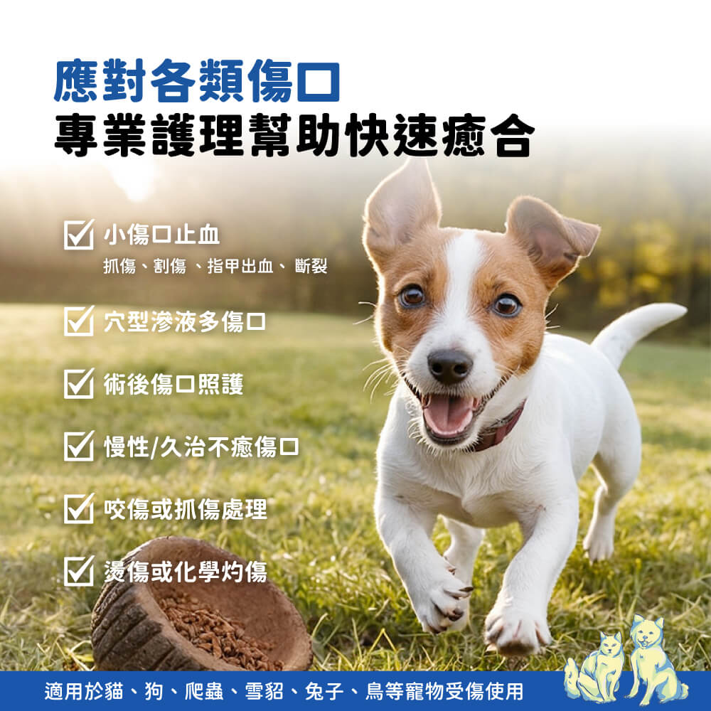 ❗️特別提醒❗️止血粉功能為協助傷口止血爭取時間,同時避免清創二次傷害。寵物嚴重受傷仍需盡速就醫,避免傷口感染惡化。